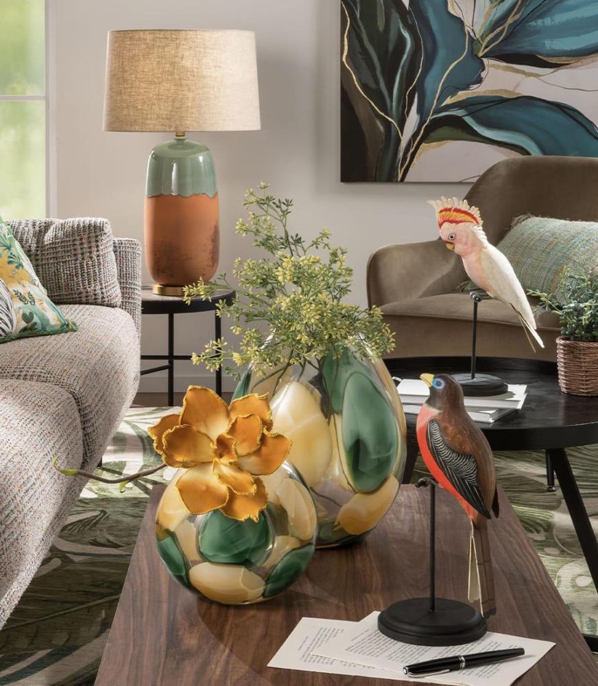 Vaso alto in vetro con allegro decoro in giallo e verde Dimensioni: Ø19x19h / Materiale: Vetro